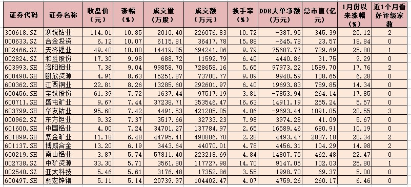 表:1月7日有色金屬行業(yè)漲幅超5%個股一覽