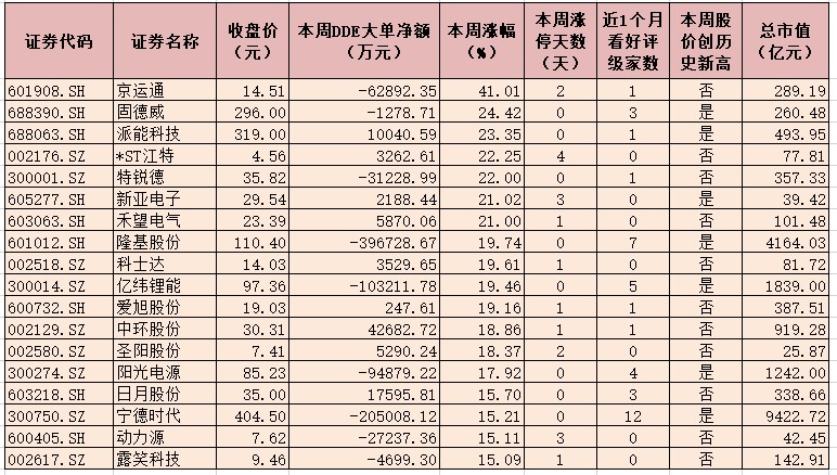 表:本周漲幅超15%電氣設(shè)備行業(yè)個(gè)股一覽