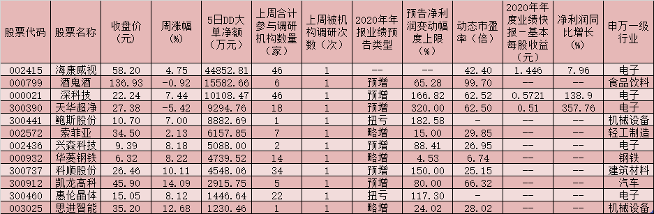 表:3月首周實現(xiàn)超千萬元大單資金追捧且年報業(yè)績預喜的機構(gòu)調(diào)研股