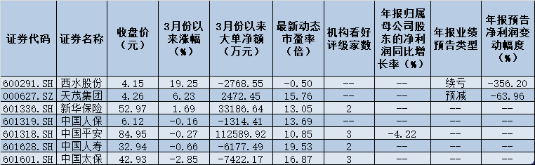 雖然目前保險(xiǎn)行業(yè)業(yè)績尚未完全拉開面紗,但相關(guān)上市公司股價(jià)表現(xiàn)已嶄露頭角。3月份以來,保險(xiǎn)股悉數(shù)跑贏大盤,其中,西水股份、天茂集團(tuán)、新華保險(xiǎn)等3只個(gè)股更是逆市上漲,期間累計(jì)漲幅分別為19.25%、6.23%、1.69%。