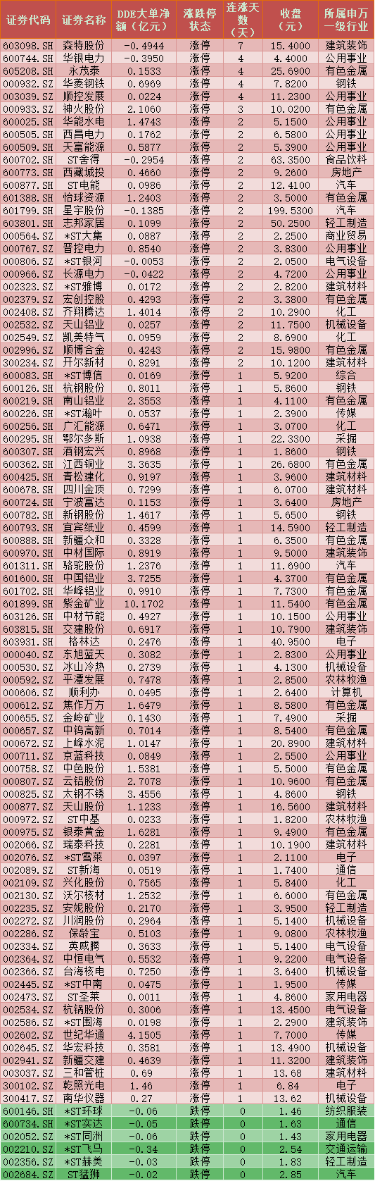 一、周四(3月11日)DDE大單資金凈買入TOP20