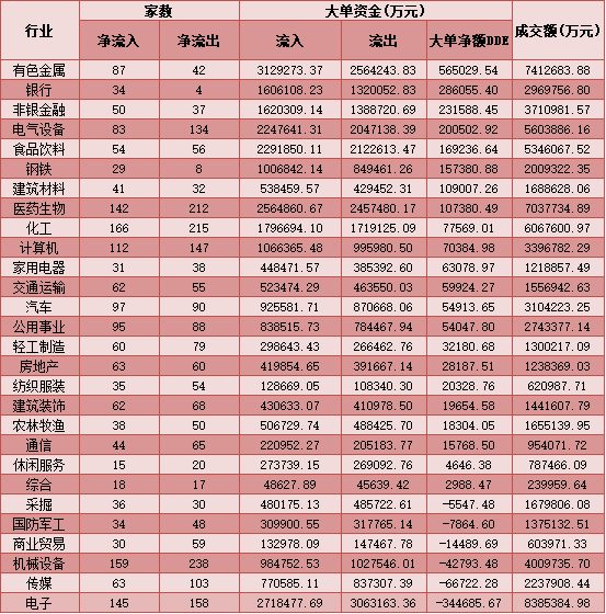 二、周四(3月11日)申萬(wàn)一級(jí)行業(yè)大單資金流向