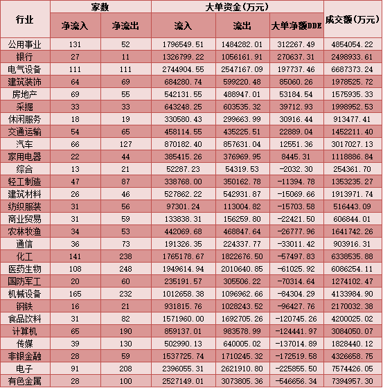 二、周五(3月12日)申萬(wàn)一級(jí)行業(yè)大單資金流向