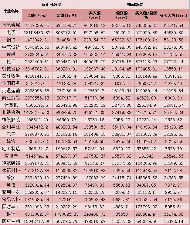 六、3月11日申萬(wàn)一級(jí)行業(yè)兩融交易情況