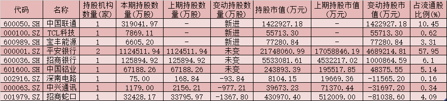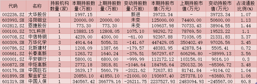 表1:去年四季度獲社?;鸪謧}(cāng)的滬深300指數(shù)成份股