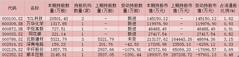 社?;鸪謧}(cāng)方面,在已披露2020年年報(bào)的滬深300指數(shù)成份股中,截至去年四季度末,有13家公司獲社?;鸪謧}(cāng),社保基金新進(jìn)持有大華股份1997.15萬(wàn)股;社?;鹄^續(xù)對(duì)TCL科技進(jìn)行加倉(cāng)操作,增持?jǐn)?shù)量達(dá)1075.10萬(wàn)股,最新持股數(shù)量達(dá)到13883.15萬(wàn)股;洛陽(yáng)鉬業(yè)、恩捷股份等2只個(gè)股本期社?;鸪止蓴?shù)量未變,分別為20000萬(wàn)股、773.30萬(wàn)股,中國(guó)人保、紫金礦業(yè)、中國(guó)巨石、中炬高新、平安銀行、長(zhǎng)春高新、北新建材、萬(wàn)華化學(xué)、中信特鋼等9只個(gè)股本期被社?;饻p持。