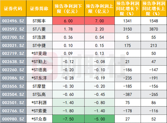 截至今日,ST股板塊已有33家企業(yè)發(fā)布中報(bào)預(yù)告,剔除其中僅作文字預(yù)告“預(yù)測(cè)不確定”、“凈利潤(rùn)可能為虧損”的個(gè)股,已有5只獲風(fēng)險(xiǎn)示警個(gè)股確定上半年業(yè)績(jī)?yōu)檎渲谢す蒘T輝豐(3.170,0.05,1.60%)(維權(quán))成績(jī)最為亮眼,預(yù)告凈利潤(rùn)約6-7億,增長(zhǎng)幅度高于1341%。此前屢遭炒作的*ST眾泰今年上半年則已確定虧損超5億元。