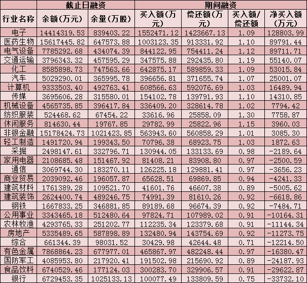 五、截至6月30日申萬(wàn)一級(jí)行業(yè)兩融交易情況