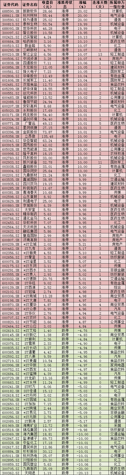 三、周一(7月19日)漲跌停股