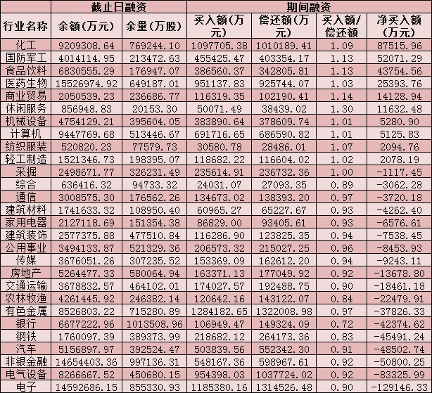 六、截至7月16日申萬(wàn)一級(jí)行業(yè)兩融交易情況