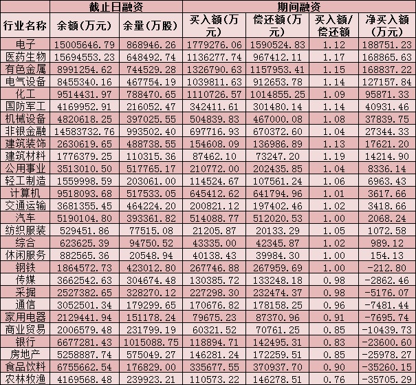 六、截至7月22日申萬一級行業(yè)兩融交易情況