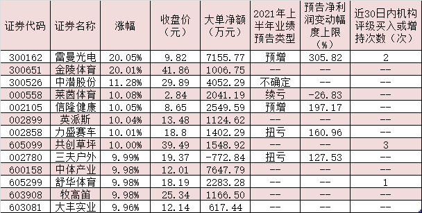 表:8月4日實現(xiàn)漲停的體育產(chǎn)業(yè)概念股