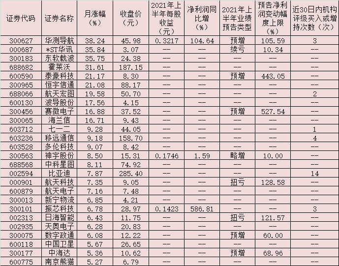 表:8月份以來(lái)漲幅超5%的北斗導(dǎo)航概念股一覽