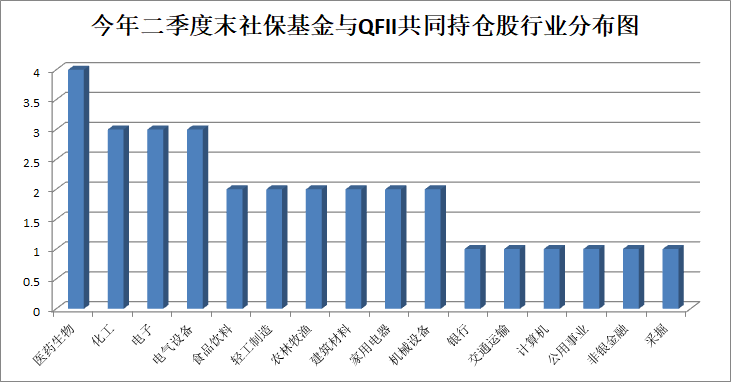 圖為:今年二季度末社保基金與QFII共同持股行業(yè)分布圖