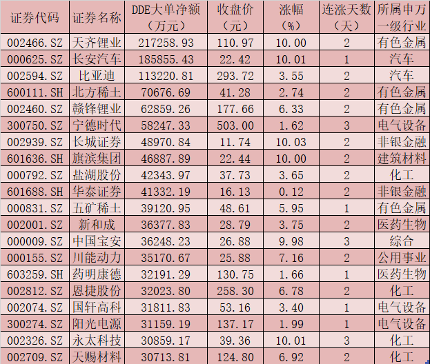 一、周四(8月19日)DDE大單資金凈買(mǎi)入TOP20