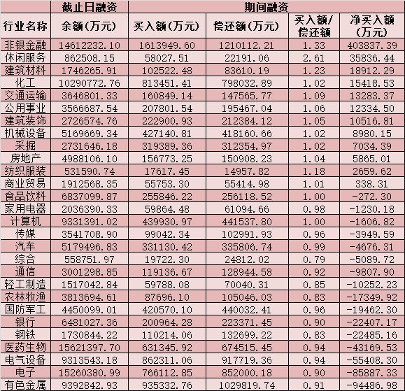 六、截至8月18日申萬(wàn)一級(jí)行業(yè)兩融交易情況