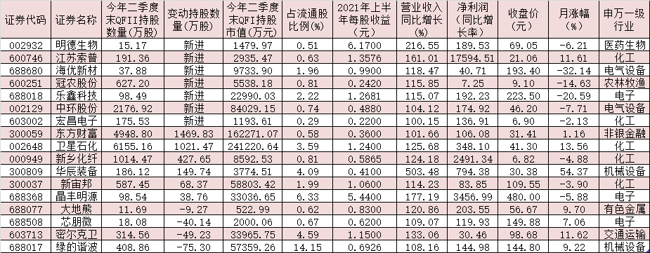 以QFII為代表的外資也提前布局了上半年營業(yè)收入同比翻番股。統(tǒng)計顯示,截至二季度末,上述121只營業(yè)收入實現(xiàn)同比翻番股中,有17只被QFII持倉,合計持股市值為72.94億元。其中,中環(huán)股份、冠農(nóng)股份、江蘇索普、宏昌電子、樂鑫科技、海優(yōu)新材、明德生物等7只個股本期成為QFII新進的重點品種,并對東方財富、衛(wèi)星石化、新鄉(xiāng)化纖、華辰裝備、新宙邦、晶豐明源等6只個股繼續(xù)加倉操作,這13只個股QFII合計增持資金達24.26億元,后市表現(xiàn)值得關(guān)注。
