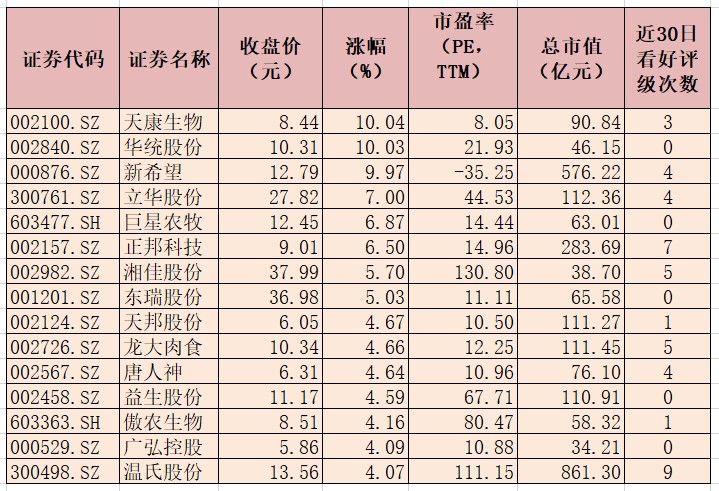 表:9月16日漲幅超4%豬肉板塊股一覽