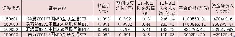 4只MSCI中國(guó)A50ETF上市8天資金凈流入逾70億元