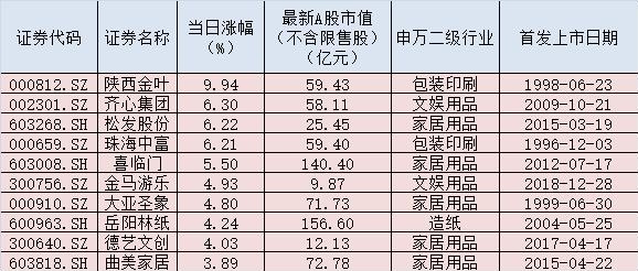 從當(dāng)日市場(chǎng)表現(xiàn)來(lái)看,中銳股份收獲一字漲停板,齊心集團(tuán)、松發(fā)股份、珠海中富、喜臨門(mén)等個(gè)股漲幅均超過(guò)5%。