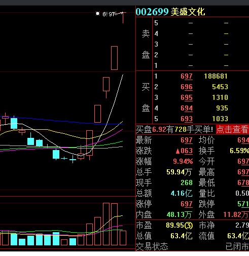 值得關(guān)注的是,近日,傳媒板塊持續(xù)上演漲停潮,多只個(gè)股不斷走強(qiáng),連續(xù)多日漲停,美盛文化五連板,歡瑞世紀(jì)四連板。