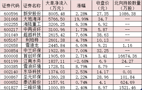 表:12月16日受到千萬(wàn)元以上大單資金追捧的固廢處理概念股