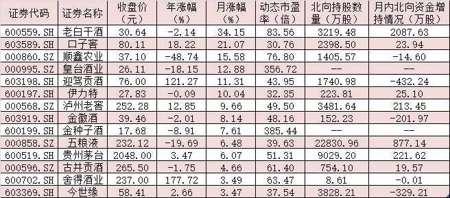 表:12月份以來股價實現(xiàn)上漲的白酒股一覽