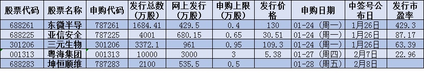 表:下周(1月24日-1月28日)5只新股申購(gòu)情況: