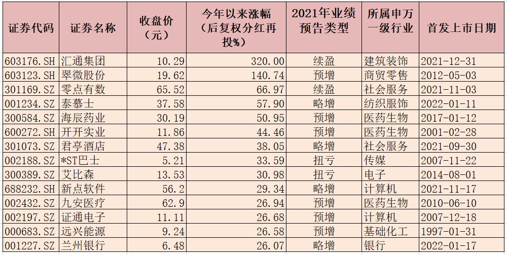 表:今年以來漲幅超26%的業(yè)績預(yù)喜股一覽