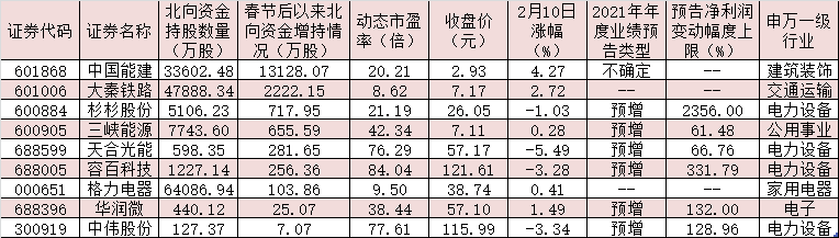 三是北向資金關(guān)注度較高。統(tǒng)計發(fā)現(xiàn),截至目前,上述9只個股全部被北向資金持倉,合計北向資金持股數(shù)量達(dá)16.08億股,較春節(jié)前的14.34億股增長1.74億股,增幅為12.13%。其中,中國能建、大秦鐵路期間最受追捧,期間北向資金增持?jǐn)?shù)量分別為13128.07萬股、2222.15萬股,杉杉股份、三峽能源、天合光能、容百科技、格力電器等5只個股期間也均獲得超百萬股北向資金青睞。