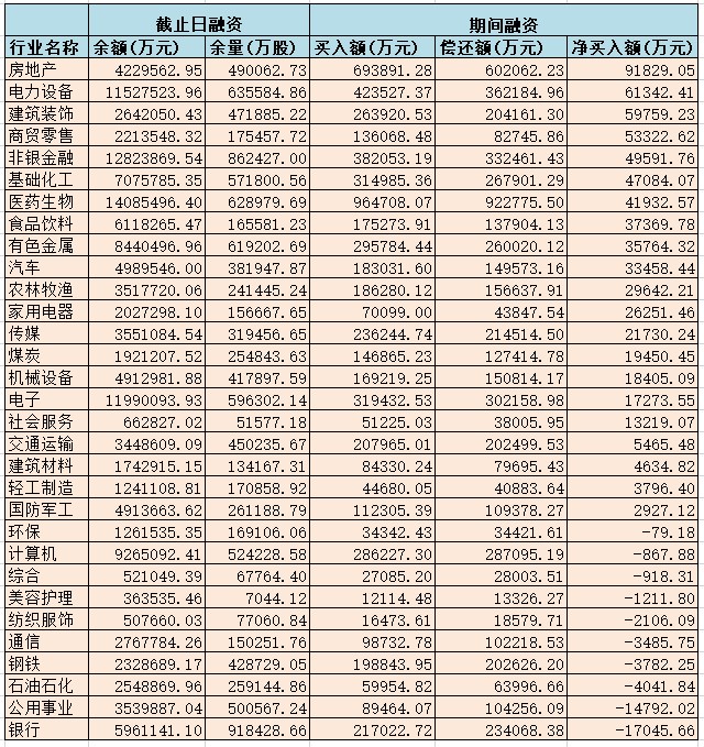 表:4月6日申萬一級(jí)行業(yè)兩融交易情況: