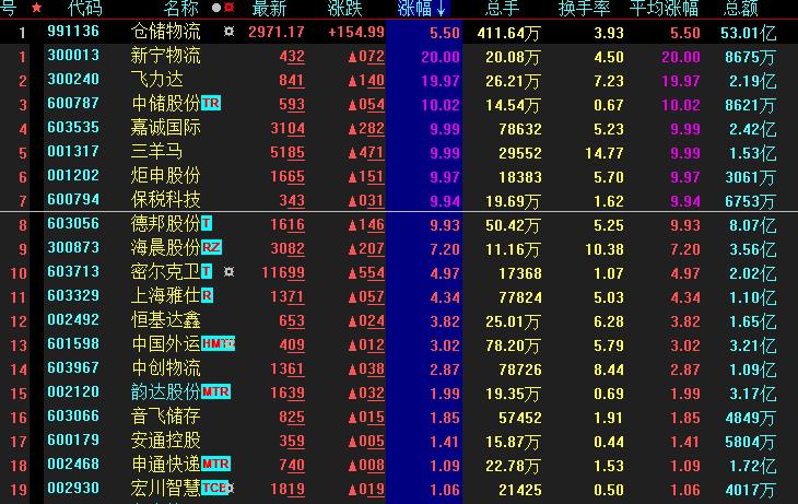 具體來看,4月11日上午,倉儲(chǔ)物流板塊異軍突起,表現(xiàn)強(qiáng)勁。截至上午收盤,板塊漲幅居首達(dá)5.5%。7只概念股集體漲停,其中,新寧物流、飛力達(dá)等2只個(gè)股均達(dá)20CM漲停。