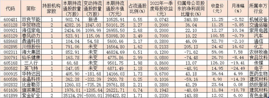 事實(shí)上,社?;鸪謧}(cāng)股整體業(yè)績(jī)表現(xiàn)較好,上述15只個(gè)股中有10只個(gè)股2022年一季度歸母凈利潤(rùn)實(shí)現(xiàn)同比增長(zhǎng),占比近七成。其中,雙良節(jié)能、川恒股份、紫金礦業(yè)等3只個(gè)股2022年一季度歸母凈利潤(rùn)同比翻番。