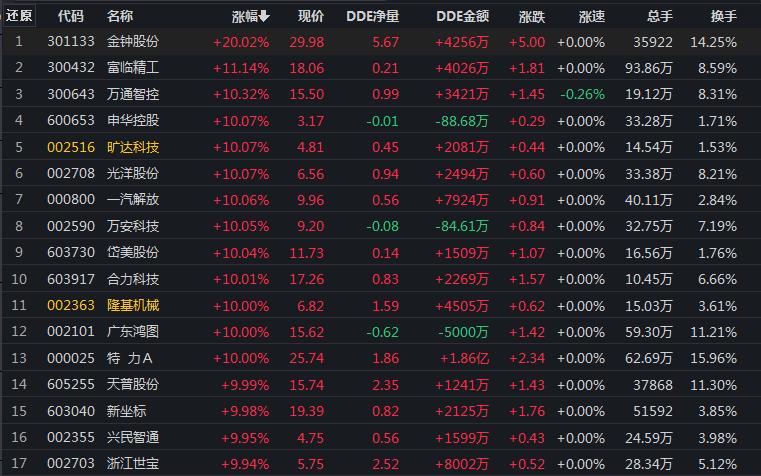 6月13日,汽車行業(yè)漲幅居首達(dá)2%,18只汽車股集體漲停,其中,金鐘股份20CM漲停。