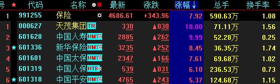 具體來看,6月15日上午,保險板塊表現(xiàn)搶眼,漲幅居首達(dá)7.92%。其中,天茂集團(tuán)、中國人壽等2只個股攜手漲停。新華保險、中國太保等個股漲幅超7%。