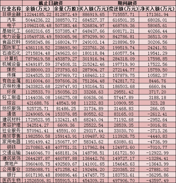表:6月14日申萬一級行業(yè)兩融交易情況: