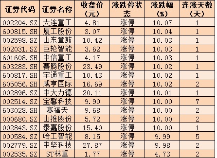 表:7月1日,16只機(jī)械設(shè)備行業(yè)漲停股情況:
