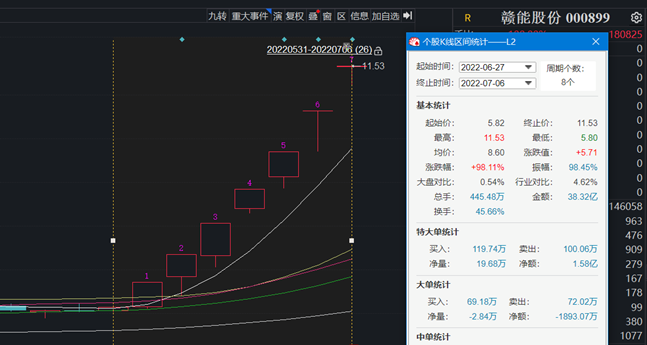 7月6日,贛能股份再度漲停,報(bào)收11.53元,自6月27日以來(lái),截至7月6日已連續(xù)8個(gè)交易日上漲,累計(jì)漲幅達(dá)98.11%,最近7個(gè)交易日連續(xù)收獲漲停板。