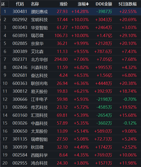 7月6日,電子行業(yè)漲幅居首,達(dá)0.58%。行業(yè)288只交易中的個(gè)股,有131只上漲,其中,5只個(gè)股漲停。