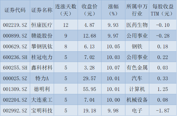 表:連續(xù)上漲5天且今日收盤漲停股一覽