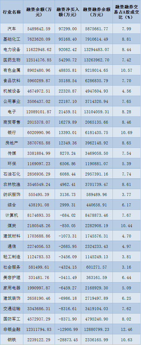 表:7月7日申萬一級(jí)行業(yè)兩融交易情況: