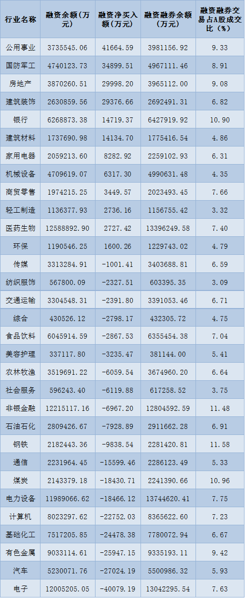 表:7月21日申萬(wàn)一級(jí)行業(yè)兩融交易情況: