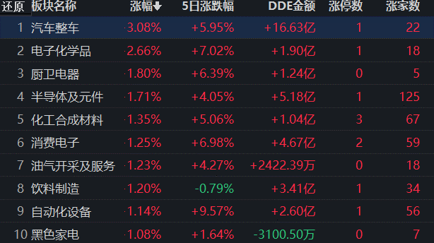 從漲幅居首的汽車整車行業(yè)看,截至8月1日11:30,行業(yè)交易中的23只個(gè)股,有22只上漲,其中,有1只個(gè)股漲停,有8只個(gè)股漲幅超4%。從資金流向看,汽車整車行業(yè)今天上午大單資金凈流入額達(dá)16.63億元,居各行業(yè)第1位。
