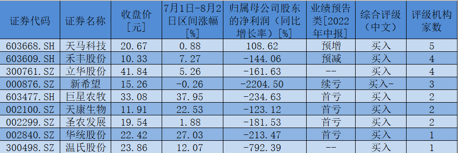 表:最近30日內(nèi),獲機(jī)構(gòu)給予“買入”或“增持”等看好評級的養(yǎng)雞股一覽