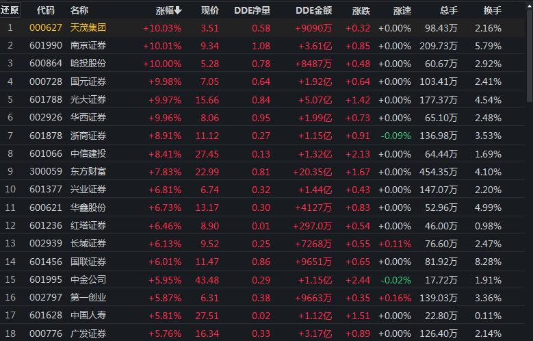 8月11日,非銀金融行業(yè)漲幅居首,達(dá)4.53%。其中,弘業(yè)期貨、南京證券、國元證券、華西證券、哈投股份、光大證券、ST海投、天茂集團(tuán)等8只個(gè)股集體漲停。