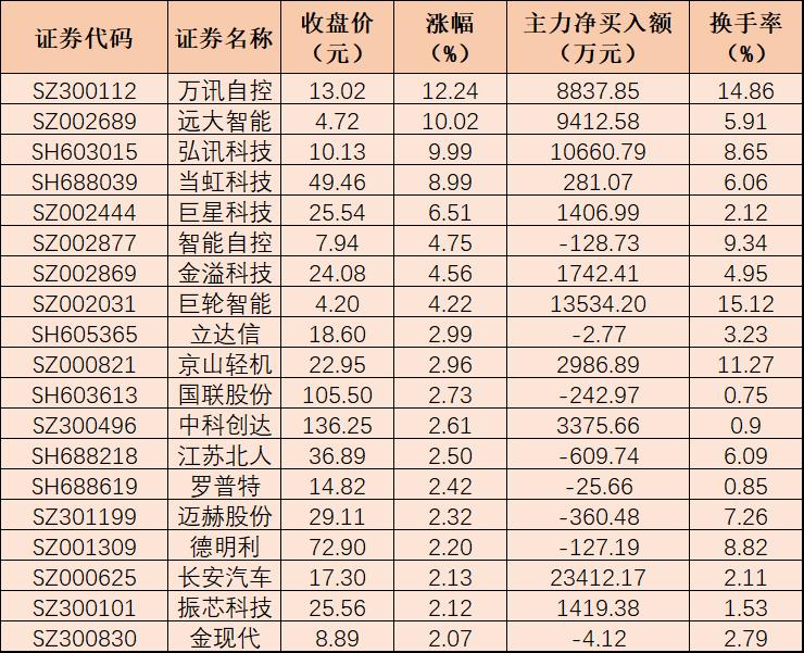 表:8月16日上午漲幅超2%的人工智能概念股一覽