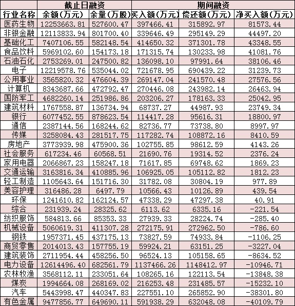 表:8月23日申萬一級行業(yè)兩融交易情況: