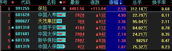 具體看,截至8月24日上午收盤,保險板塊走強(qiáng),漲幅居首,達(dá)2.59%。其中,中國人壽、天茂集團(tuán)、中國平安、中國太保等個股漲幅超2%。
