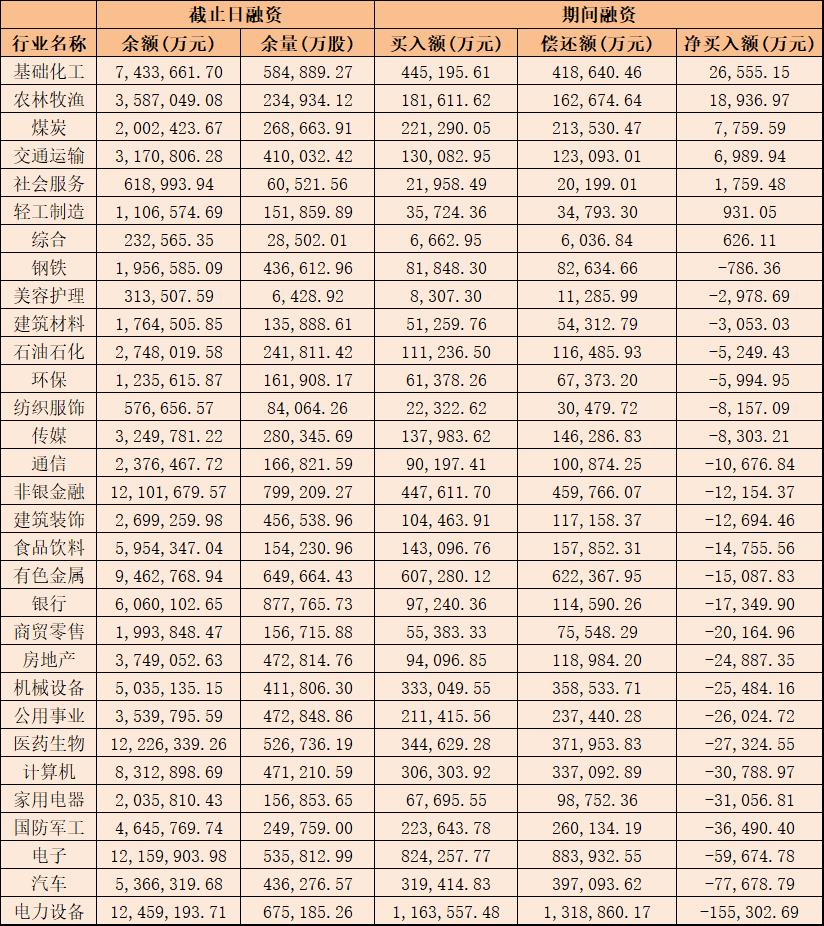 表:8月24日申萬一級行業(yè)兩融交易情況: