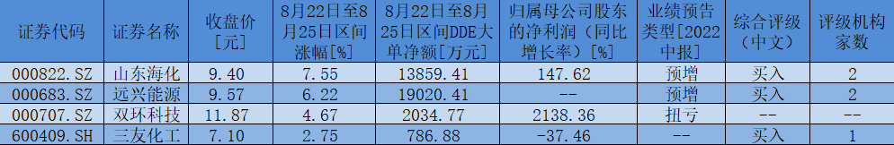 表:8月22日至8月25日,純堿板塊個股行情一覽